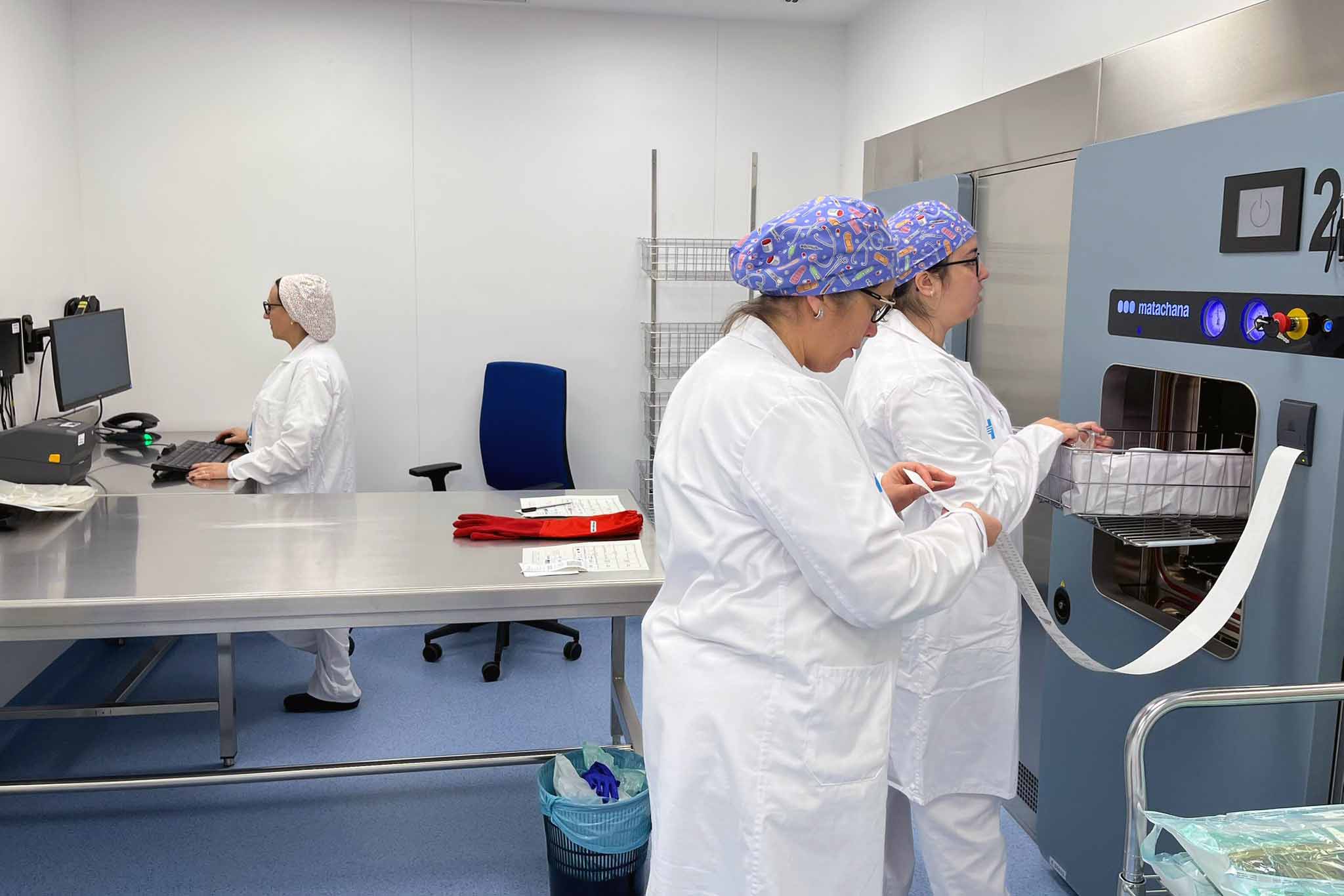 He de dir que per aquesta posada en marxa hem treballat molt estretament amb Serveis Generals de la Unitat Econòmica i Financera pel que fa a la gestió de les rutes i la recollida i entrega del material, per poder assegurar la rebuda del material esterilitzat a temps per part dels equips. I l’equip de manteniment de la Unitat d’Infraestructures ens ha donat i ens dona suport sempre que ho necessitem.